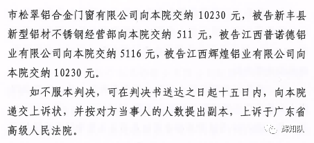 丹东凤铝系列维权案:诉辉煌公司等四被告,法院判赔250余万
